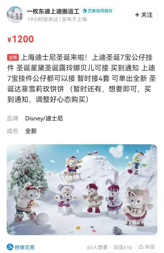 今年8月,上海迪士尼度假区上架的“星黛露中秋系列毛绒玩具”在短短3天内便宣告售罄。然而,原价359元的迪士尼中秋星黛露玩偶,却在二手平台上价格涨了数倍出售,甚至有卖家挂上了1980元的“天价”。
