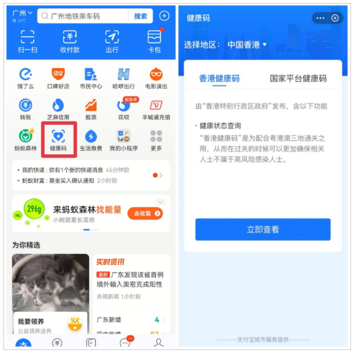 香港健康码上线支付宝和港版支付宝 广深市民已开放申领