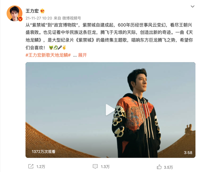 直至近年,王力宏在娱乐圈仍有较高曝光度,并频繁出现在多部音乐类综艺节目。11月27日,王力宏发布歌曲《天地龙鳞》,该曲为大型纪录片《紫禁城》最终集主题曲。