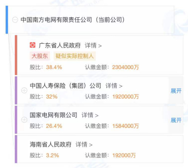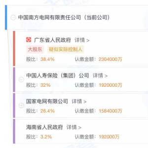 本次股权调整之前,南方电网公司的股份结构是:广东省人民政府持股38.4%,中国人寿保险(集团)公司持股32%,国家电网公司持股26.4%,海南省人民政府持股3.2%。