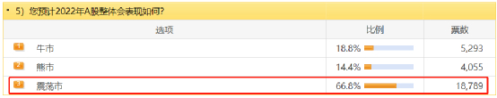 对于2022年的预期,多数投资者认为是“震荡市”,占比超过三分之二。