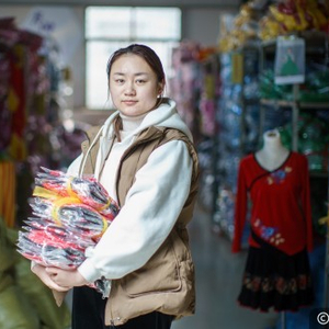 现在任家两代人的分工是这样:任艳夫妇负责店铺管理、网络销售和发货,任庆生夫妇负责布料、车间、生产服饰、供应村里其他商家线下拿货。让传统的归传统,让现代的归现代。