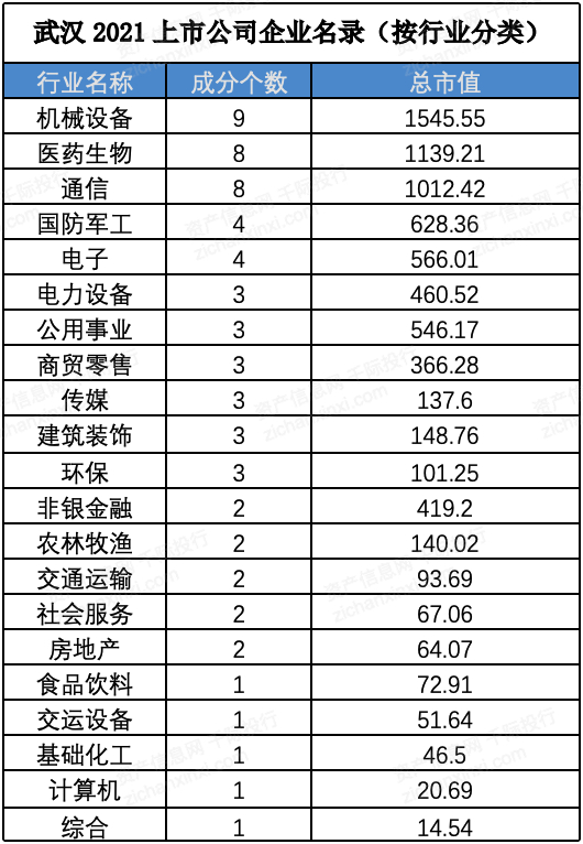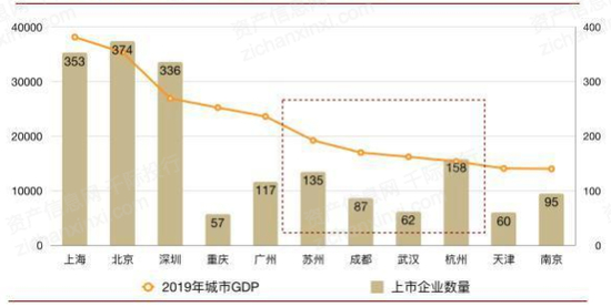 由上图可知,武汉市上市企业数量相较于其他的一二线城市来说较少,说明武汉市资本活力有待加强,上市企业数量有更大的发展空间。