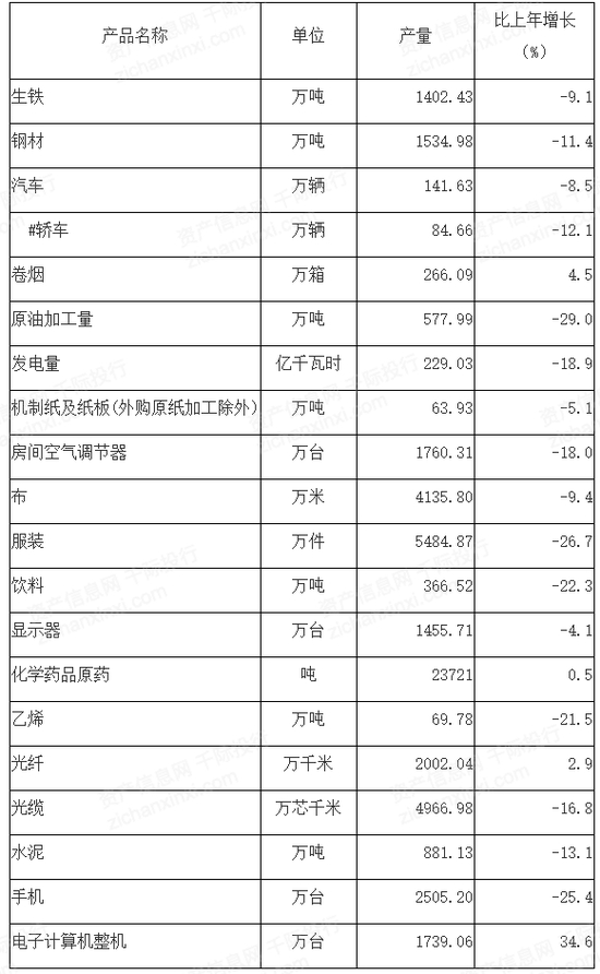 按产业分,第一产业投资下降15.2%;第二产业投资下降20.2%,其中工业投资下降20.4%;第三产业投资下降8.8%,其中基础设施投资下降16.7%。民间投资下降18.8%,占固定资产投资的比重为47.0%。