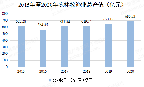 全年农林牧渔及服务业增加值423.94亿元,比上年下降3.7%。粮食总面积降到2020年为144千公顷,较上年增加0.95千公顷,同比增加0.7%;粮食总产量较上年增加1.0万吨,同比增加1.1%。