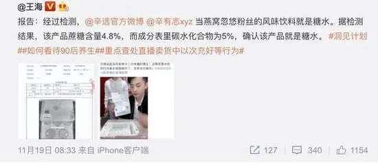 回顾:辛巴带货燕窝,实为风味饮料!质疑者曾遭网暴