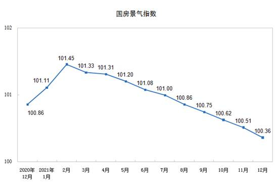 2021年12月份,房地产开发景气指数(简称“国房景气指数”)为100.36。