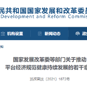 发改委发布关于推动平台经济规范健康持续发展的若干意见(全文)