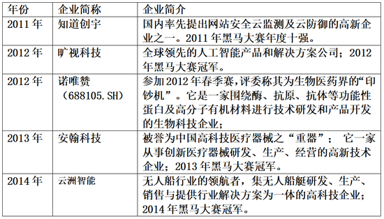 下附部分黑马大赛优秀参赛企业名单: