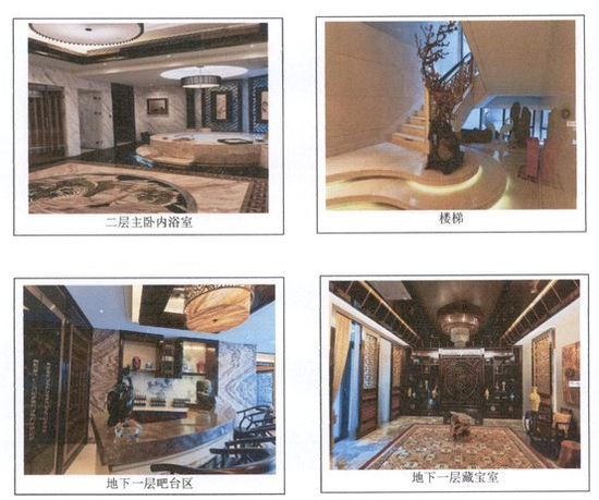 安装有三菱电梯,整体装修用材考究、风格大气,融入较多中国传统文化元素,寓意吉祥富贵;实地查勘时,该别墅为空置,无租赁权。