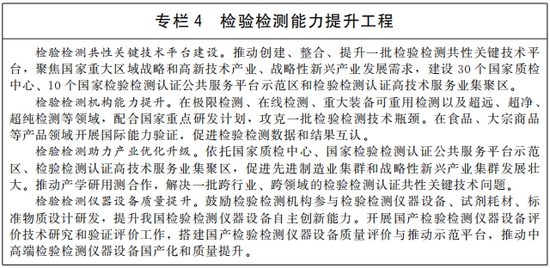 加大认可和检验检测改革创新力度。建立适应高质量发展需要的认可和检验检测体系,实现检测能力显著增强、行业规范运行水平和社会公信力明显提升。稳定事关人民群众身体健康和生命财产安全、公共安全、生态环境安全等方面的检验检测队伍,建设强有力的权威实验室。坚持市场化改革方向,积极推进事业单位性质的检验检测认证机构改革,促进第三方检验检测认证机构发展。建立健全检验检测认证行业品牌培育、发展、激励、保护政策和机制,推动检验检测认证服务业做优做强。推进国家检验检测认证公共服务平台示范区、检验检测认证高技术服务业集聚区建设,完善检验检测认证机构布局,引导检验检测认证产业集约化发展。组织实施检验检测促进重点产业优化升级行动,规划建设一批高水平国家质检中心和检测实验室。研发一批重要检验检测技术和规定,提升综合检验检测能力。完善认可制度,加强认可机构管理,推进认可结果国际互认。