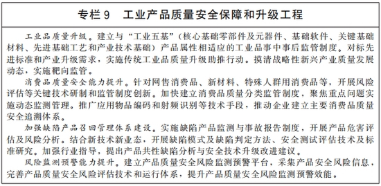 加大消费品安全监管力度。推动企业建立主要消费品质量安全追溯体系,记录重点环节过程信息,实现产品质量安全问题可追溯。健全缺陷产品召回制度,加强大中型客货车、新能源汽车与智能网联汽车、智能家居、儿童用品、电子电器等重点产品召回管理,强化重大案件调查与召回后续监督工作,完善缺陷产品召回技术支撑体系。完善产品伤害监测制度,拓宽监测信息采集渠道,增加监测点,推进产品伤害预防干预。完善产品质量安全事故强制报告和调查处理制度,提高质量安全事故人身伤害赔偿标准。