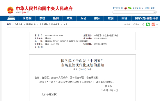 现将《“十四五”市场监管现代化规划》印发给你们,请认真贯彻执行。