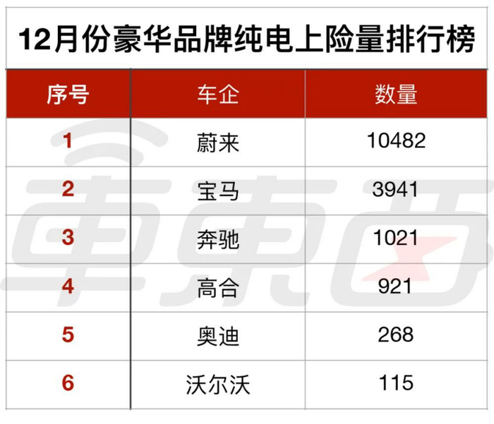 ▲ 12 月份新造车企业上险量排行榜