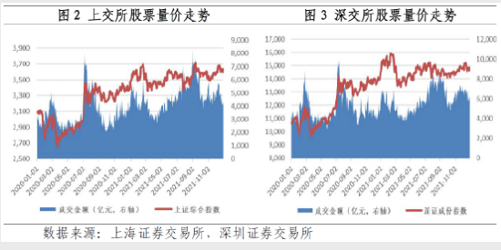 2021年末,上证指数收于3639.8点,较2020年末上涨166.7点,涨幅为4.8%;深证成指收于14857.4点,较2020年末上涨386.7点,涨幅为2.7%。两市全年成交额258.0万亿元,同比增长24.7%。