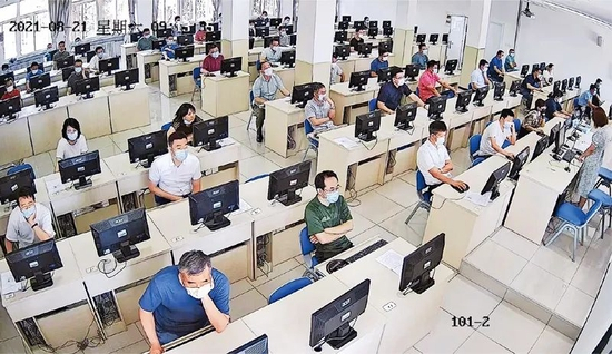 天津市坚持新提任处级党政领导职务政治理论水平任职资格考试制度,通过“以考促学”、“凡提必考”,引导年轻干部自觉学懂弄通做实习近平新时代中国特色社会主义思想。图为天津市新提任处级党政领导职务政治理论水平任职资格考试现场。 天津市委组织部供图