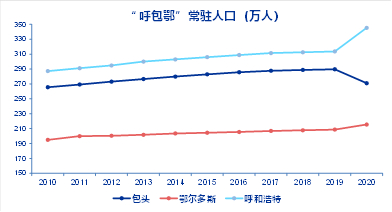 图7:对比兄弟城市呼和浩特与鄂尔多斯,包头市的常住人口出现明显下滑