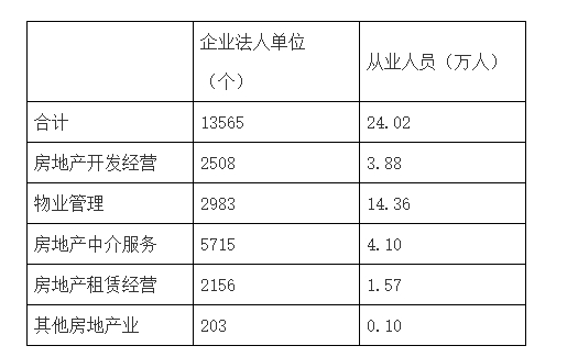 行业规模持续增大。第四次全国经济普查主要数据公报显示,2018年末,全市房地产业企业法人单位13565个,资产总计28792.87亿元,从业人员24.02万人,比2013年末分别增长140%、120%、53.3%。其中,物业服务和中介业增长快,物业服务企业2983个,资产830.34亿元、从业人员14.36万人,比2013年末分别增长93.5%、280%、57.5%。房地产中介服务企业5715个,资产218.99亿元,从业人员4.10万人,分别比2013年末增长2.2倍、1.3倍、1.0倍。