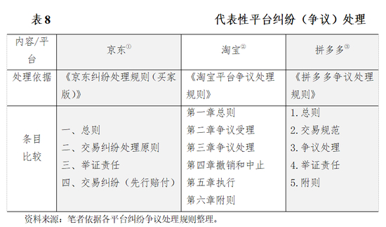 有交易就会有纠纷,平台交易数量巨大,因此相应纠纷和投诉数量很大。平台通过建立了纠纷解决规则和采取相应措施,为处理交易中的纠纷提供依据,进而规范交易流程(见表8)。