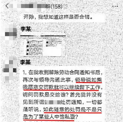 李某向上级领导反映,得到的反馈是如果愿意交罚款则可以继续工作。因对公司单方解除劳动关系存在异议,气愤的李某连夜在咨询公司的客户微信群中发表长文控诉公司及内部领导的种种行为,其中包含“如此随意的处罚是不是只是为了某些人中饱私囊”“做假的排班和考勤,串通监理公司欺骗甲方,欺上瞒下”等言论。