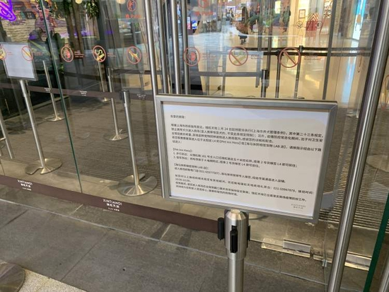 记者走访发现,购物中心几乎每个入口前都竖起了一块告示牌,上面写着,自1月24日起配合执行《上海市养犬管理条例》,并出于对疫情防控常态化期间对卫生安全等因素的考量,谢绝宠物进入商场室内。有需要前往位于4楼的宠物店和宠物照相馆可以通过指定货梯,或由工作人员引导从专属通道进店。