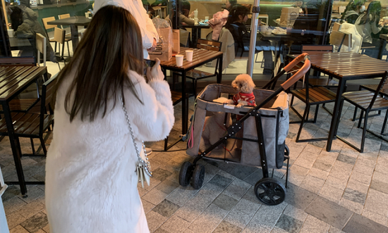 虽然宠物能够进入BFC的室内区域,但商场要求严格遵循“不落地”的基本原则,宠物主人需使用手推车、提笼、背包等装备或自行抱起宠物。