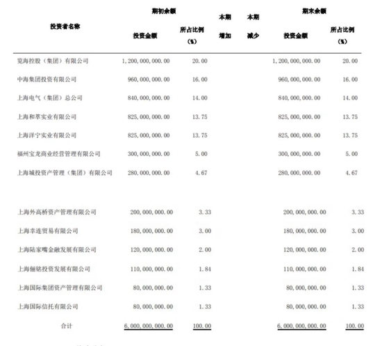 览海控股(集团)有限公司为该公司的最大股东,此外还有中海集团投资有限公司、上海电气控股集团有限公司、上海陆家嘴金融发展有限公司、上海国际信托有限公司等在内的13个股东。