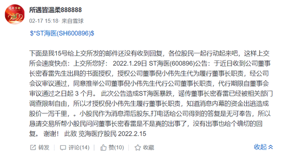 对此,《一点财闻》就相关情况向*ST海医求证,截止发稿前,未得到对方回复。