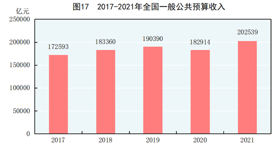 注:图中2017年至2020年数据为全国一般公共预算收入决算数,2021年为执行数。