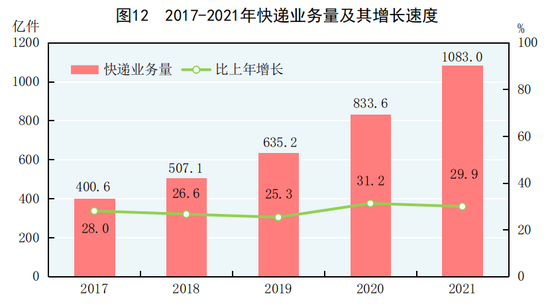[29]货物运输总量及周转量包括铁路、公路、水路、民航和管道五种运输方式完成量,2021年增速按可比口径计算。