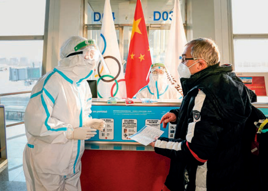 2022年1月31日,北京首都机场冬奥人员通关现场秩序良好,疫情防控等各项工作平稳有序。图/视觉中国