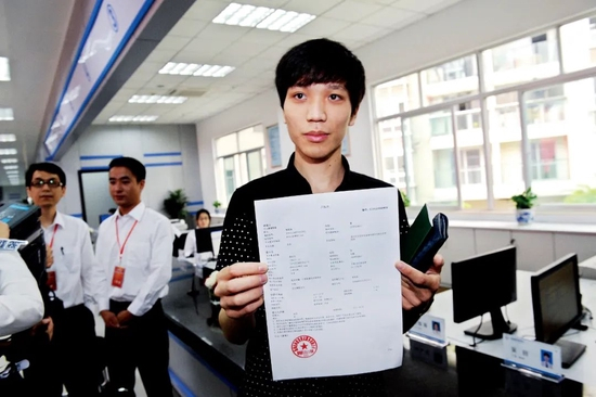章华妹展示中国第一份个体工商业营业执照。本版图/中新