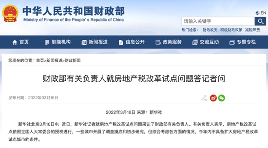 财政部:今年内不具备扩大房地产税改革试点城市的条件