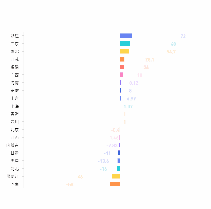 在20个省份中,有12个省份常住人口数量呈现增长,其中有5个增量超过20万人;有8个省份常住人口出现下降,其中河南常住人口减少了58万人,下降幅度最大。