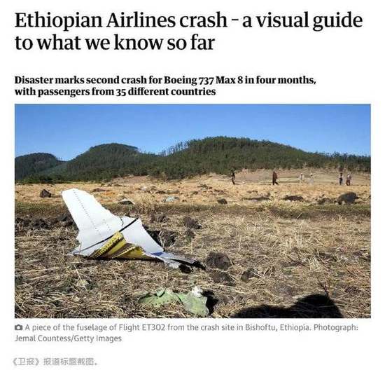 因此,可以推断这两架飞机并非来自同一家航空公司。鉴于绿、黄、红为埃塞俄比亚国旗配色,在谷歌中围绕关键词“Ethiopian airlines crash”进行搜索,可知2019年3月,埃塞俄比亚航空一架波音737也曾发生重大坠毁事故。在描述栏内,这位博主特别说明,虽然埃航302客机坠毁的惨剧并非虚构,但是这一视频不能如实反应事故发生现场状况,而只是一种模拟。