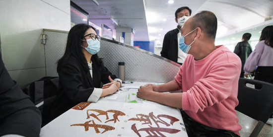 2021年2月24日,深圳市公共就业服务中心举办“2021年南粤春暖‘稳岗留工’专项行动——中小微专场招聘会”。图/新华