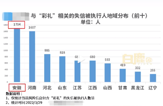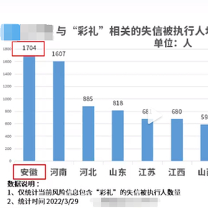 据陕西网白鹿视频官方微博日前消息,公开数据显示,当前因“彩礼”纠纷被法院列为失信被执行人的人数达 9636人。从地域分布来看,人最多的省份是安徽、河南、河北、山东、江苏等地。其中安徽省当前失信被执行人最多,共1704人,在全国排第一。