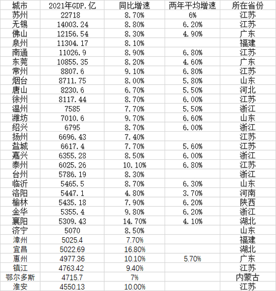 导读:第一财经记者梳理了2021年普通地级市GDP30强,其中有26个城市GDP总量超过了5000亿元,更有6个城市超过了万亿元,分别是苏州、无锡、佛山、泉州、南通、东莞。