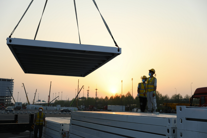 放眼望去,2号馆已方舱林立——这是与疫情赛跑的“中建速度”。