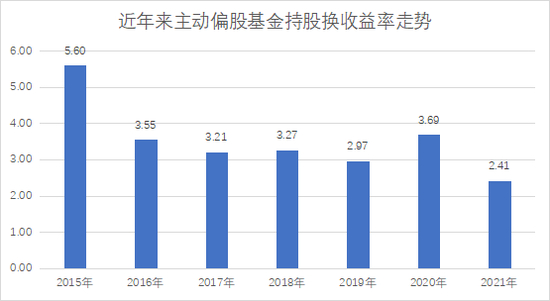 天相投顾数据显示,2021年纳入统计的封闭式、股票型开放式和混合型开放式(不含指数型封闭式、指数型开放式、混合型保本基金)的整体平均换手率为2.41倍,这也意味着,所有主动偏股开放式基金去年平均转手买卖的频率为2.41次/年。