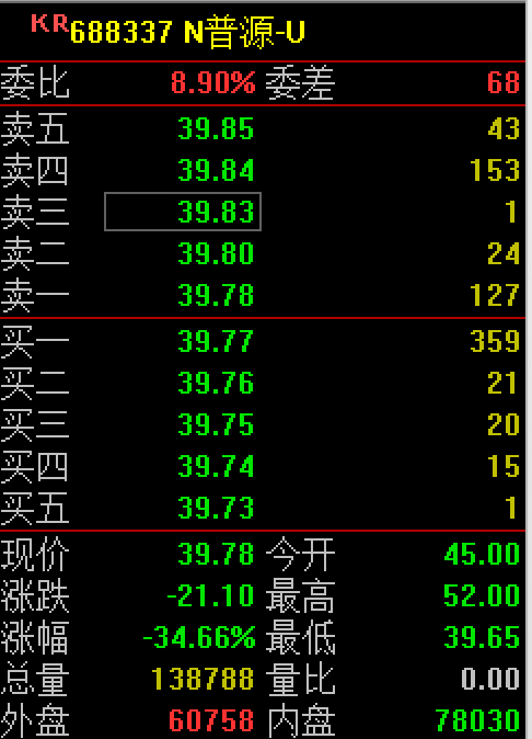 本周A股市场迎来4只新股上市。尚未盈利的普源精电4月8日登陆科创板,但上市首日破发,截至收盘下跌了34.66%,创出近20年来新股上市首日的最大跌幅,若按收盘价39.78元计算,中一签普源精电新股浮亏超过1万元。