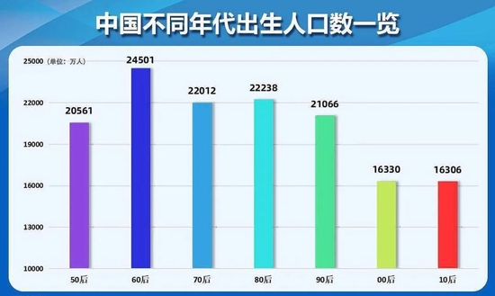 如图,中国50、60后都有2亿多人,他们中农村人口占绝大多数。以十年为期粗略估算,即相当于平均每年退出起码3000万老龄劳动力。
