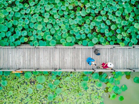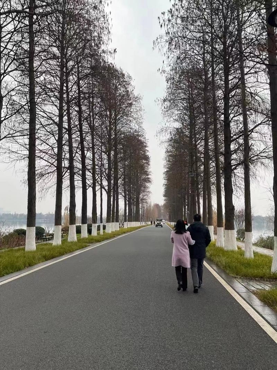 一名“90后”今年春节回家,第一次拍下父母一同散步的背影。(程依伦/摄)