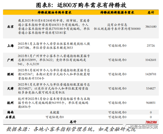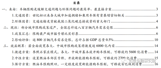 (2)若全面放开汽车限购,将释放约800万辆购车需求,提振6000亿消费