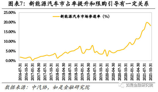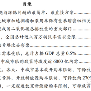 正面影响:汽车限购可能对减少碳排放有一定作用、可能从一定程度缓解拥堵加剧。汽车限购政策对于各大城市缓解拥堵的程度、汽车限购政策对于提前实现碳中和的贡献难以被直接评估,因此我们只能选择汽车保有量增速和新能源汽车市占率这两个指标来间接说明汽车限购可能对减少碳排放有一定作用、可能从一定程度缓解拥堵加剧。一是从汽车保有量来看,其增速确实出现了边际上的放缓。二是从新能源汽车市占率看,自2016年开始新能源汽车销量占全部汽车销量的比例确实出现大幅跃升,可能对缓解气候问题产生一定正面效果。但汽车保有量的边际放缓和新能源车市占率的提升也难以用限购政策完全解释,因此我们只能说限购政策“可能”有一定正面影响。