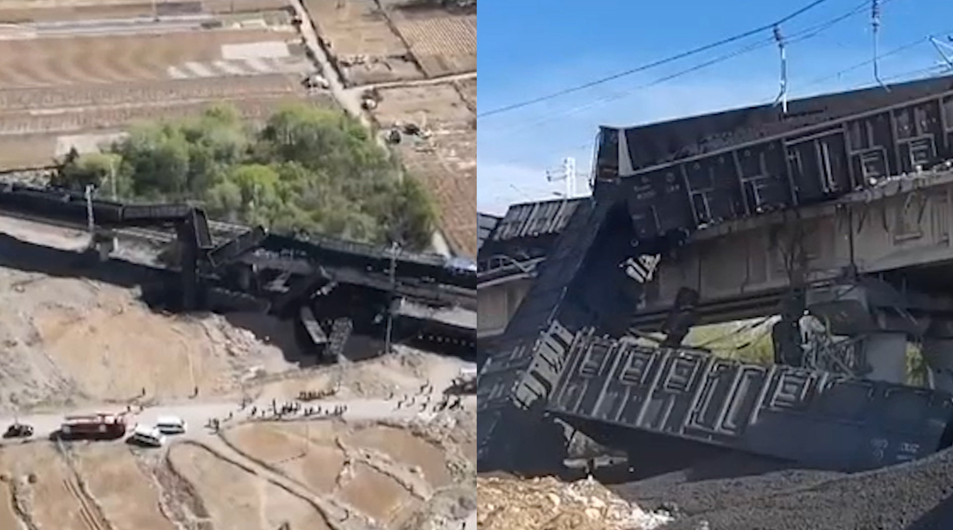 另据央视新闻客户端消息,4月14日13时许,大秦铁路天津蓟州段(大同至秦皇岛方向),2辆重载运煤列车在铁路桥上发生追尾事故,造成部分车厢脱轨。