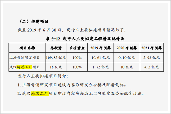 三年前,华为曾发行了2019年第一期中期票据。募集说明书显示,公司拟在武汉投资18亿人民币,兴建武汉海思工厂项目。