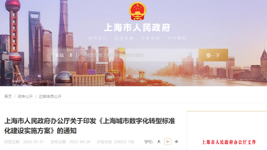 全文|上海印发《上海城市数字化转型标准化建设实施方案》