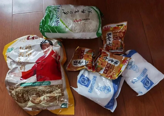 “4月8日、10号、14号、18号分别送了几次物资,有叫花鸡、扒鸡、酱鸭、腊肠、熏鱼……”尽管食用后身体尚未出现异样,但肖彦还是从食品的包装中发现了一些端倪。