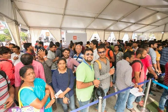 当年印度第一家小米之家开业时,超过10000名预约顾客到现场排队购买